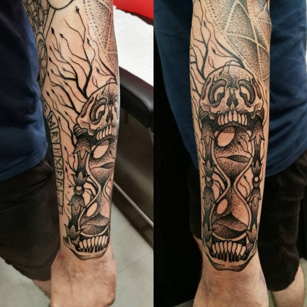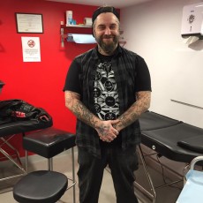 Issu de la scène musicale Angevine, leader et chanteur de Métal, Tom collabore avec le Studio 54 depuis deja plusieurs années. Autodidacte et talentueux, il est à l\'aise avec tout type de tattoo : spécialisé cependant dans la calligraphie (traditionnelle, gothique, tous ses dessins sont réalisées sur mesure et à la main) il adore egalement les monstres cornus et langues fourchues! Tom possède une imagination débordante et cree des créatures etranges et derangeantes, melant techniques tradionnelles et plus recentes comme le Dot.